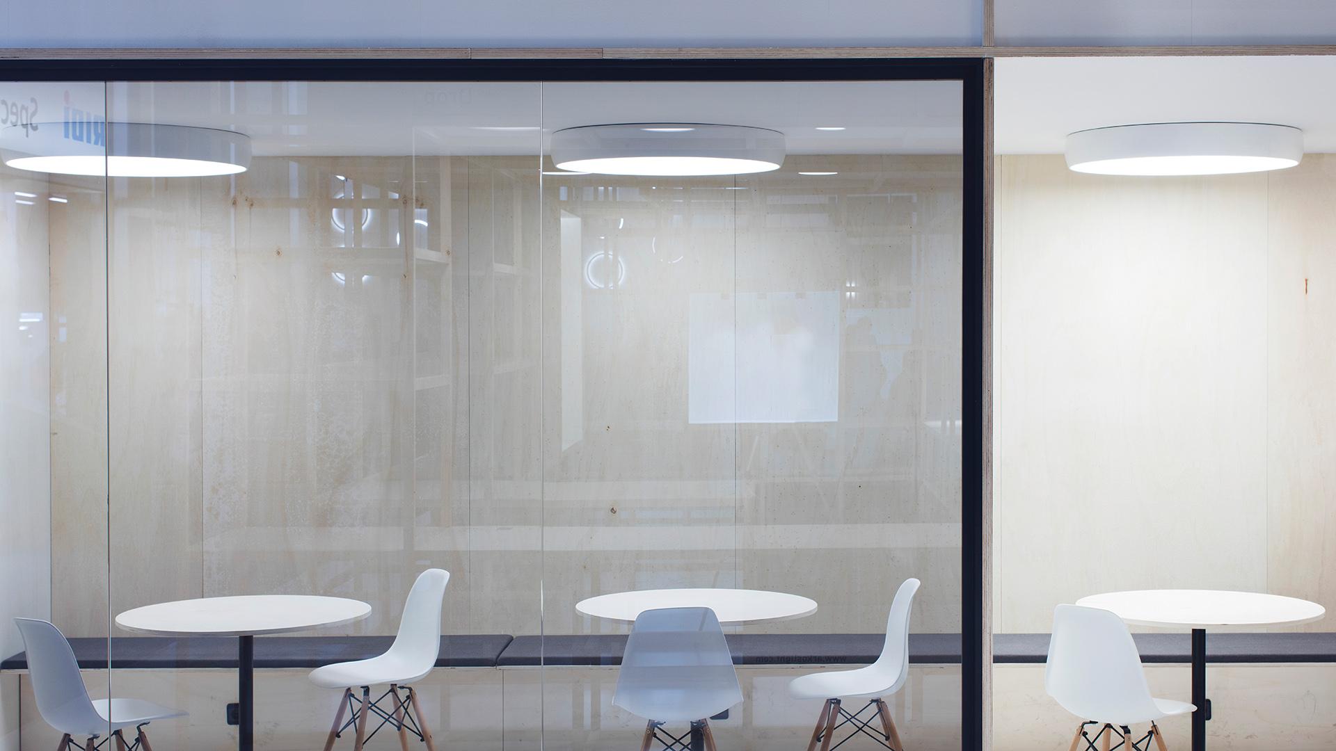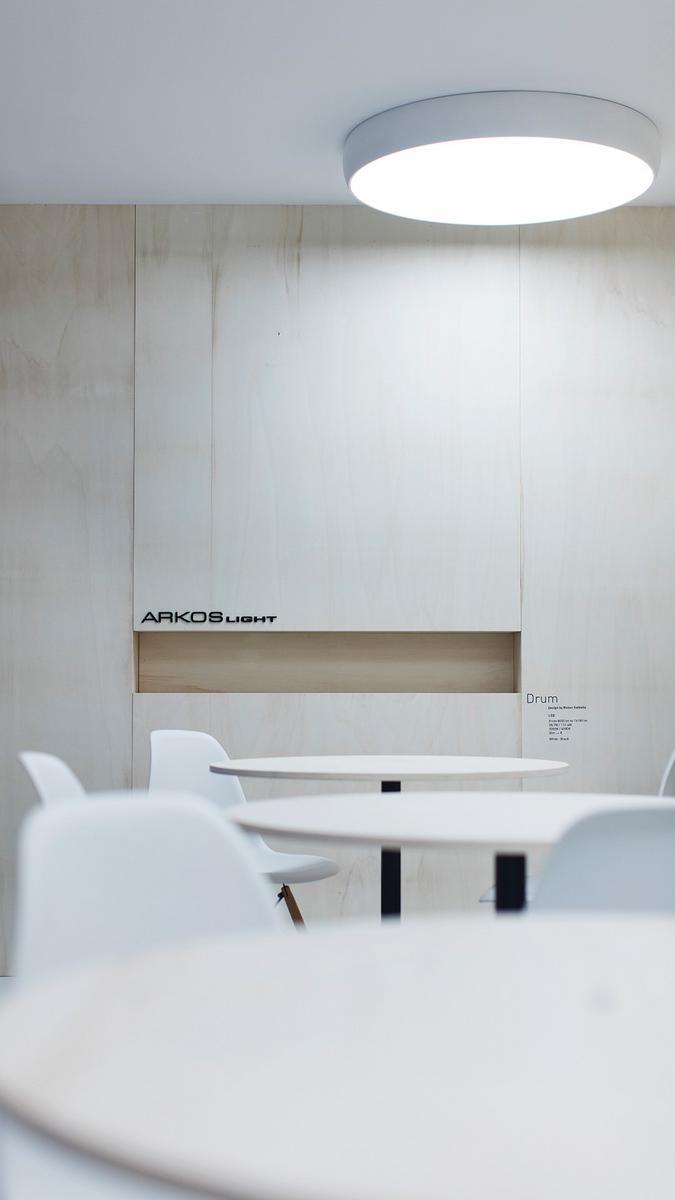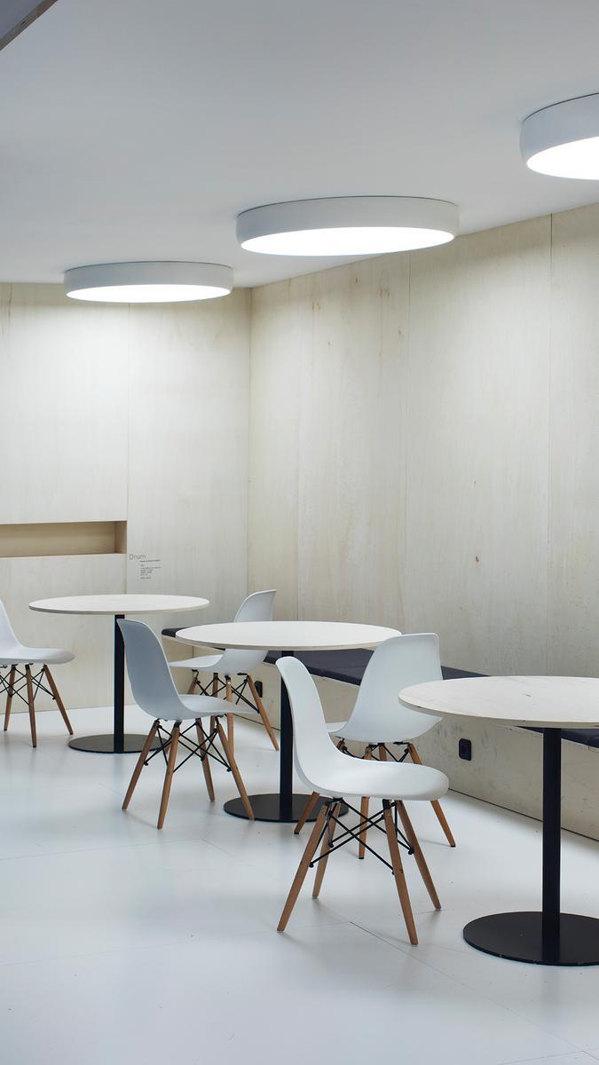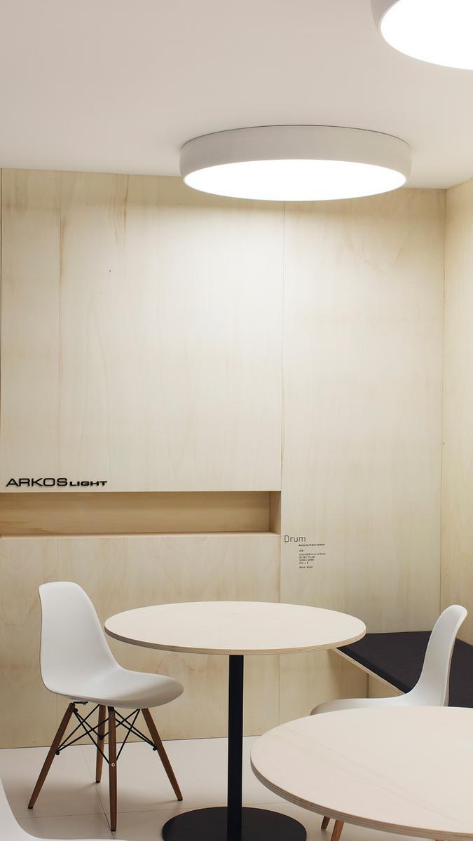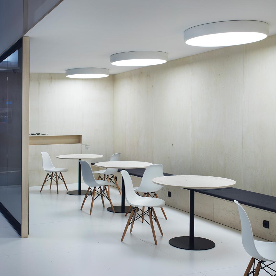 A large seized ceiling luminaire offering a major luminous flux, either as surface or as suspended fitting, with the possibility to hang it at any desired height. Drum is dimmable in order to be allowed to adapt the light volume at any time exactly to the specific needs of each application or situation. In terms of forms its design is expressed in a surrounding slightly curved circular strip. Counting with a perfect, homogeneous light diffusion and the attractive illusion of a natural skylight.