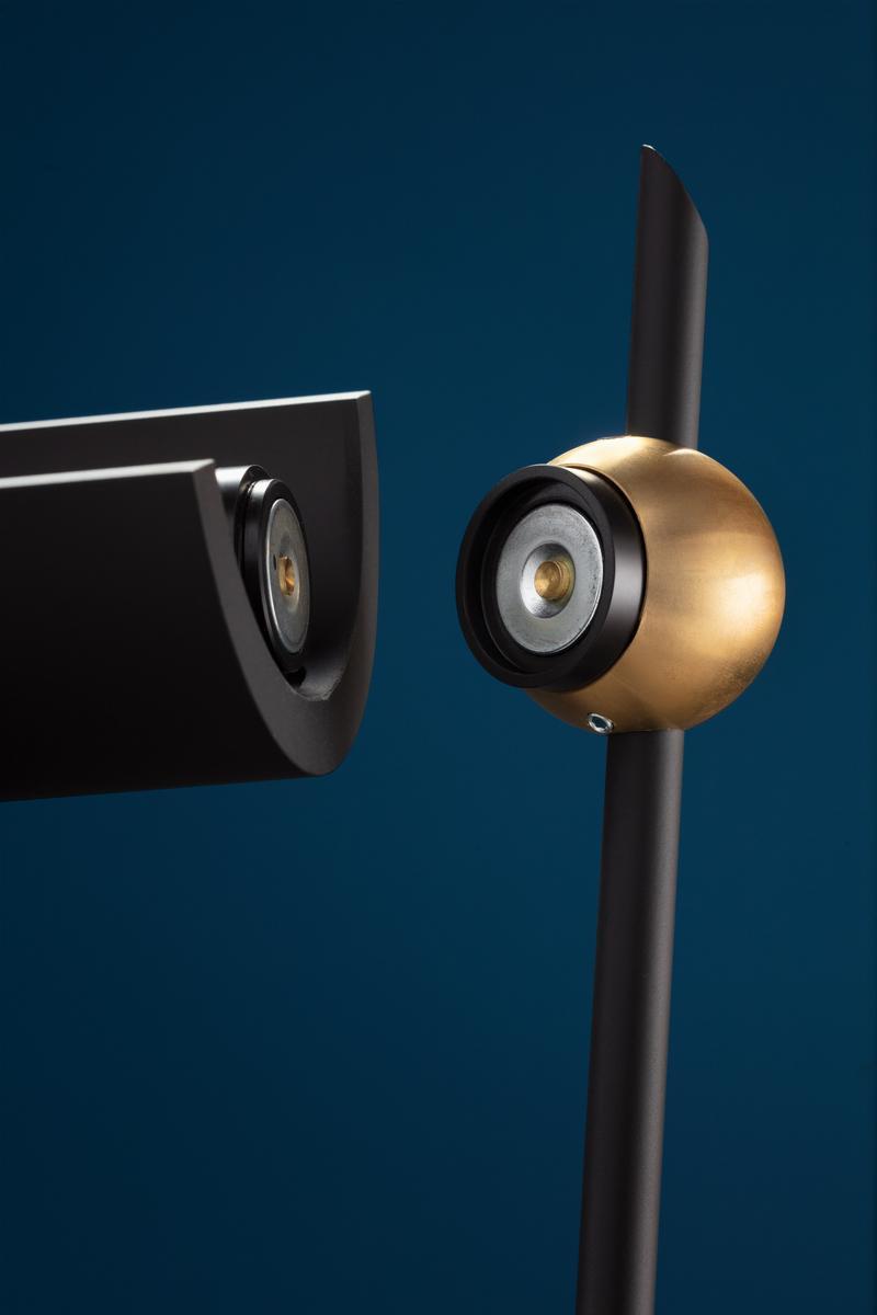 Vi. F - standing lamp Materials and colours: black or white metal structure and shade, brass details Light source: COB LED 1x15W @ 450mA / rated output 15W / energy class A++ / lumen 2200 / K 2700 / CRI 80 Power supply: 110-240V* plug driver with floor dimmer (memory last step) *The plug driver 110-240V is supplied with the electrical plug suitable for the market of reference only. Please specify in stage of order if the destination of the product differs from your standard. With its structure composed of two rods, the new Vi. celebrates a very important model of the artistic pathway followed by Catellani & Smith, inheriting the slender, strong lines of its predecessor with two rods that reach upwards but replacing the original nickel finish with a black and white colour scheme for a more contemporary look. Vi. is part of Oggetti senza Tempo. Oggetti senza Tempo represents Catellani & Smith’s more classic spirit. The collection groups together all lamps, past and future, created by Enzo Catellani, for the simple pleasure of bringing life to a gesture more than to a lamp. max H 180 cm ca.