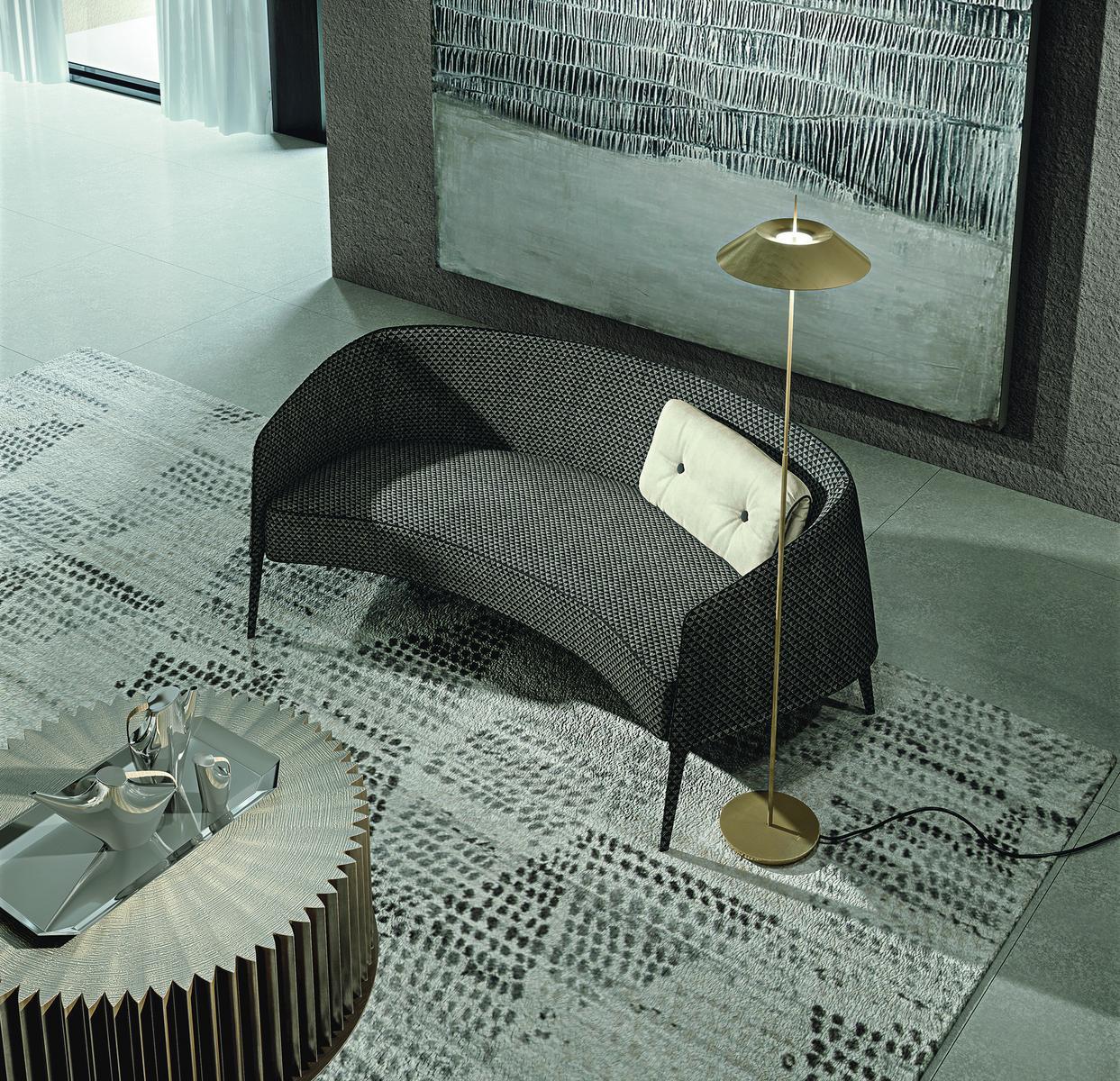 Its calling is polish; the two-seater sofa Jackie highlights a twisted semi-round outline and in the Bergère adaptation it highlights molded armrests and a high wrapping back. With a striking character, it fits effectively in each climate, either contract or residential. The cover is in fabric removable or in leather. The wooden construction is cushioned in non-deformable polyurethane with slim obviously legs in strong wood pecan canaletto or wengè colour. The assortment Jackie incorporates additionally a small sofa, a rocker, an easy chair bergère, a chaise longue and a stool. Series of easy chairs, rockers, chaise longues, sofas and poufs with exceptional and incomparable plan, totally removable covers, aside from the cowhide version. Seat in polyurethane. Feet in strong canaletto pecan or wengé stained. Covered in fabric or calfskin on request. 190 x 120 x H.72 cm
