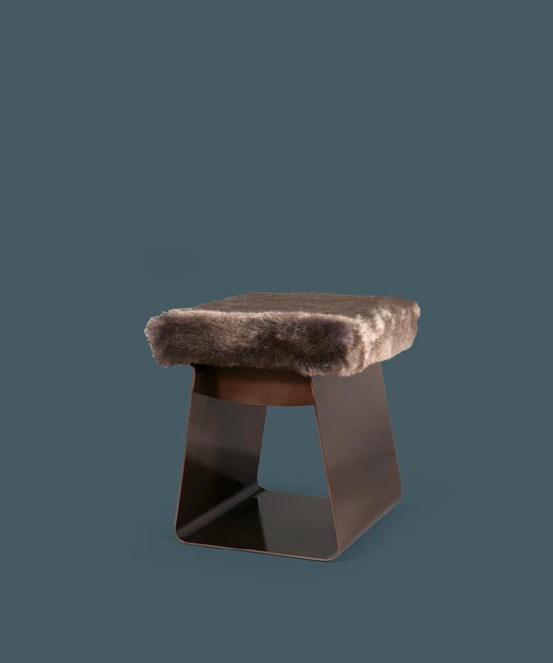 Twins when it comes to shape and styling. These footstools are created around a sinuous design that brings out the full rigidity of the metal sheet that adds body and style, but also balance and a sense of lightness at the same time. Framework: metal with lacquered or galvanic finish. Upholstery: fixed seat in polyurethane foam, with a density of 40 kg/m3.