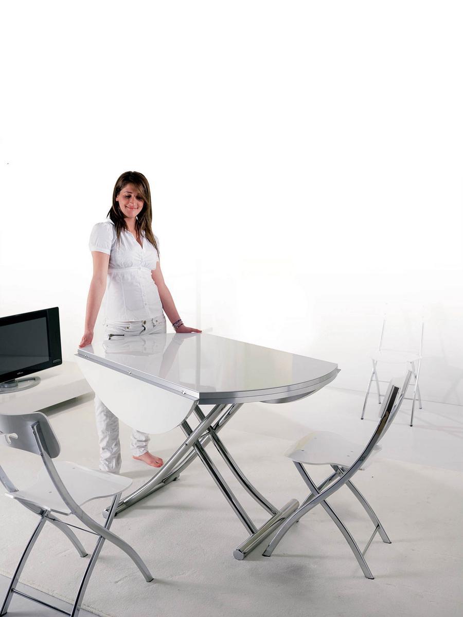 Globe CR is a transformable love seat table; it transforms into an eating table. Metal base, gas lifting device. Adjustable at any height, stowed away wheels.