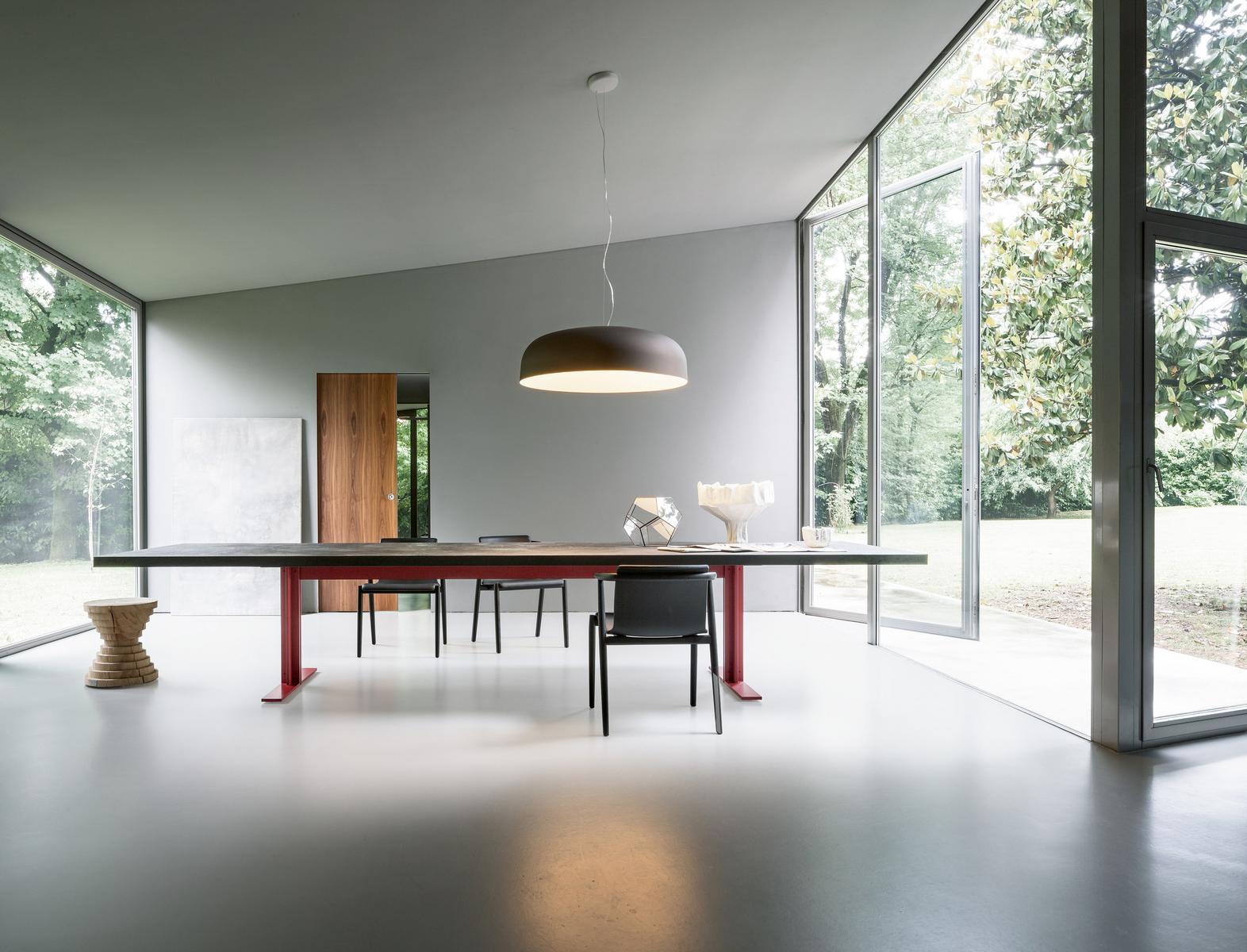 Thought to outfit an enormous eating region or refined gathering room, Memo is a table portrayed by moderate attentiveness that characterizes Piero Lissoni's style, Lema's craft chief beginning around 1995, and by huge sizes. Available in two adaptations, 300×110 and 400×110 cm, is way from a gaudy plan furor and it is engaging for the equilibrium and balance of the components: the top in heat-treated oak or Lava stone and the metal structure. The stylish examination was indeed centered around materials and their expressive capacity that beats any type of artifice. STRUCTURE: - Metal COUNTERS: - Wood - Lava stone